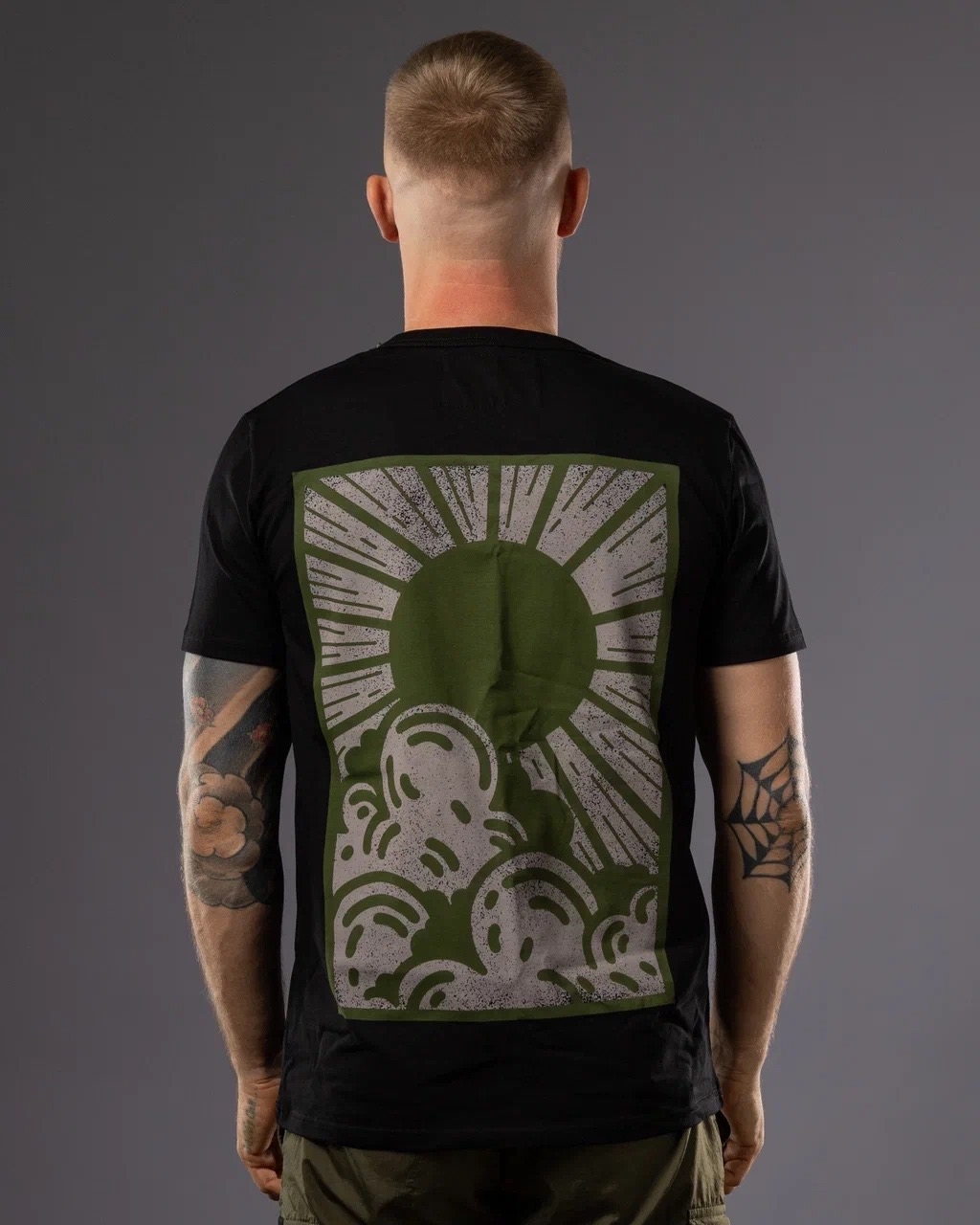Классическая базовая футболка прямого кроя, изготовлена из плотной ткани премиум класса с добавлением лайкры. Горловина имеет вшитое усиление для повышения прочности и сохранения формы. Горловина изготовлена из плотного кашкарсе. Оригинальный большой принт на спине. Печать принта нанесена шелкотрафаретным методом, рисунок стойкий, не выстирывается. Состав: 92% хлопок, 8% лайкра.