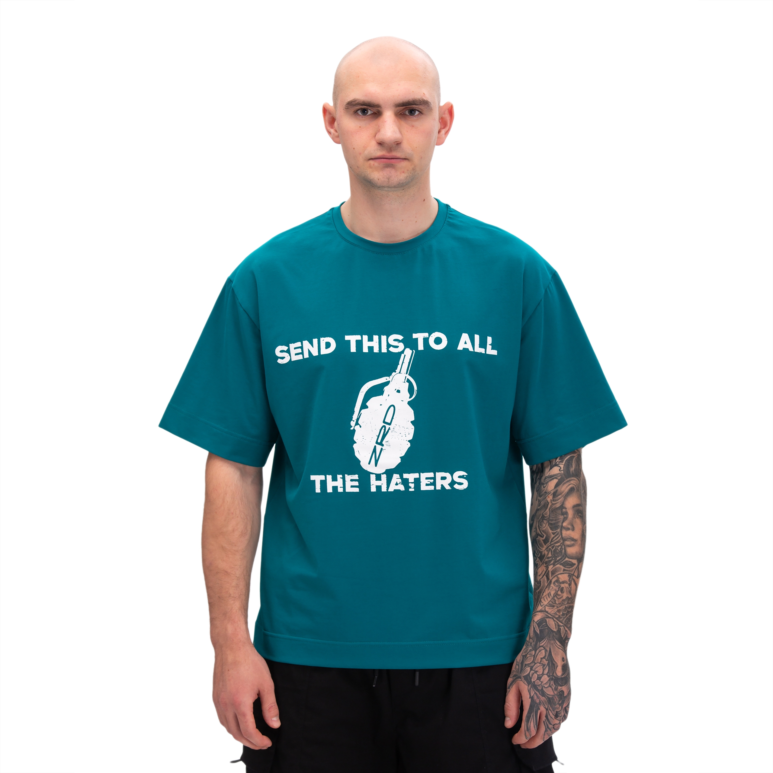 T-shirt «Limonka» – классическая футболка из французского термохлопка с базовой расцветкой и шелкографической печатью на груди. Принт с лимонкой, которую мы предлагаем всем хейтерам. В боковом шве – силиконовая бирка с молнией. Нанесение: шелкография