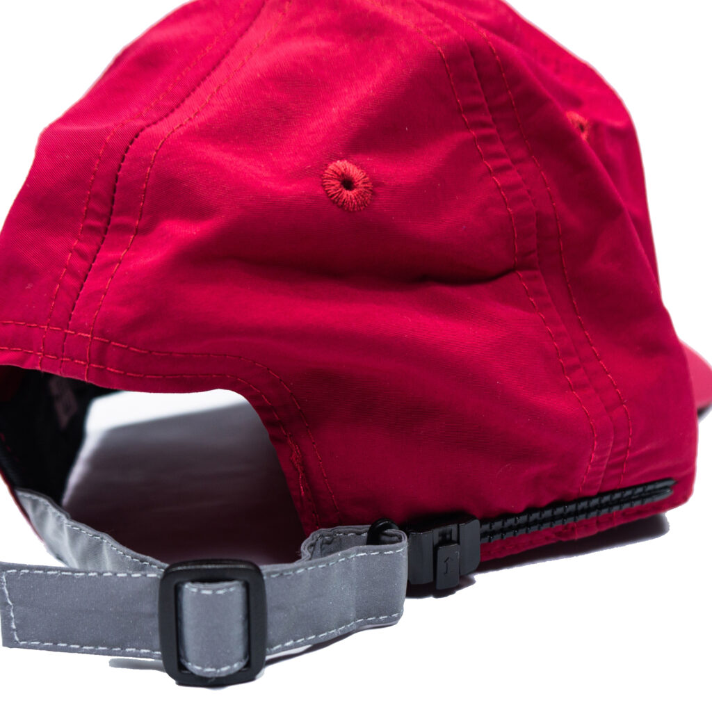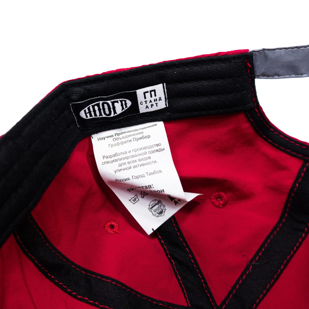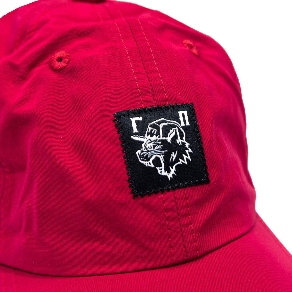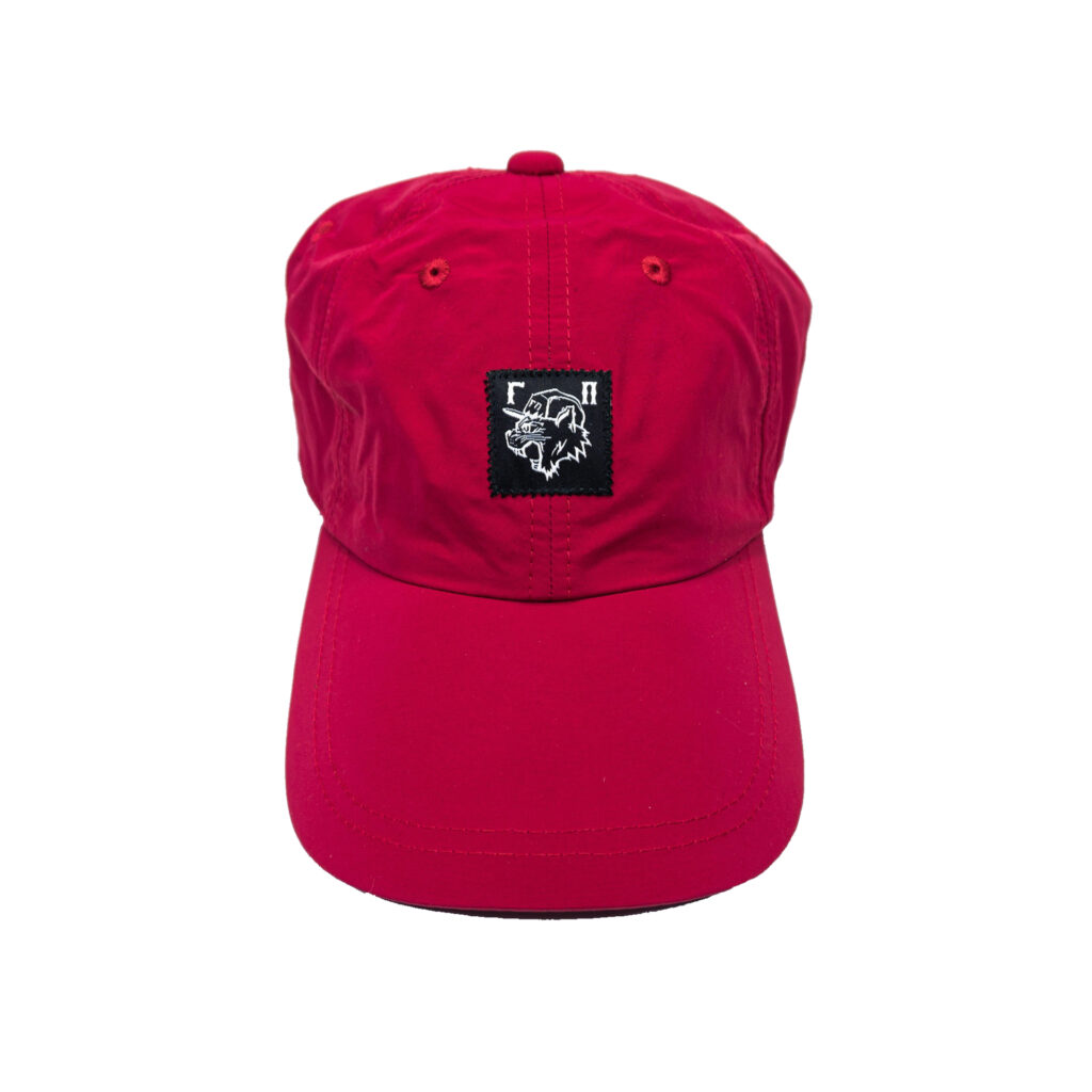 Красная кепка классической формы с логотипом «ГП». Средняя посадка, прямой козырек, удлиненный ремень фиксации.