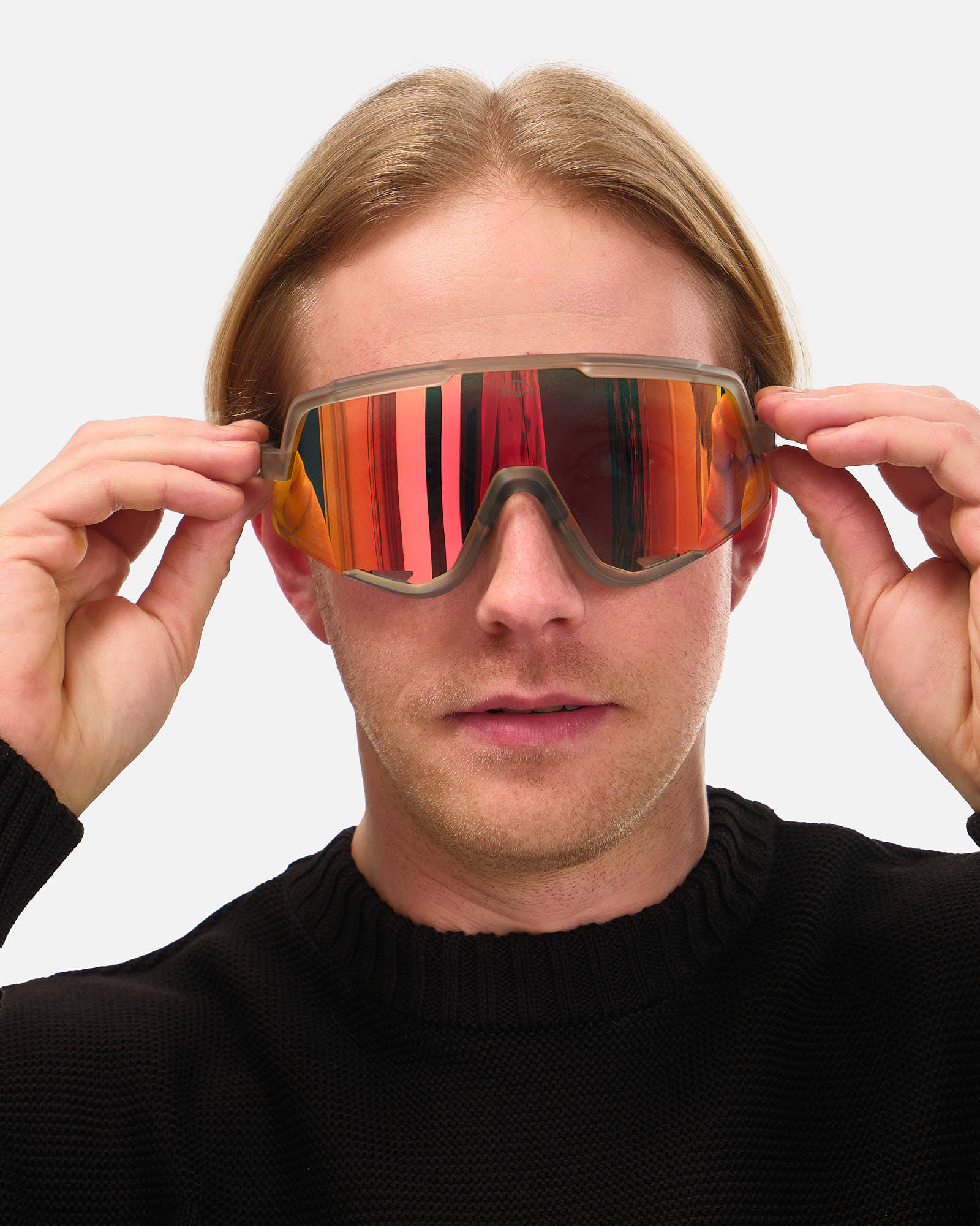 Цвет: матовая прозрачная оправа с оранжево-красной линзой с голубым отливом.