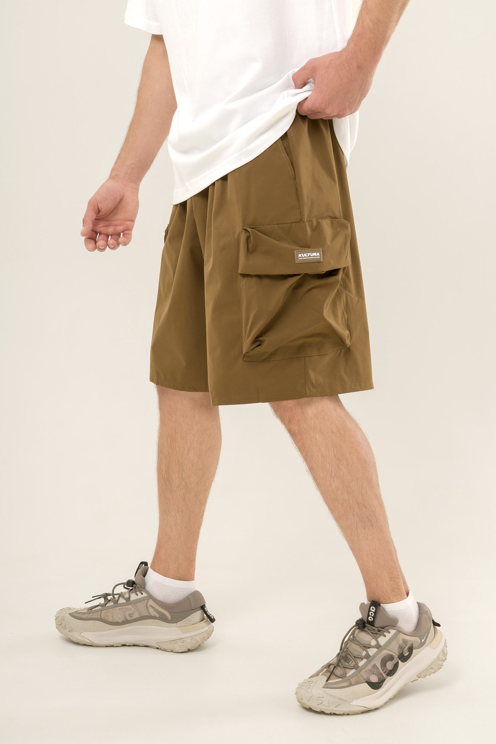 Нейлоновые карго-шорты KUL'TURA объединяют в себе легкость и функциональность, необходимые для комфортного лета. Высокотехнологичный нейлон практически не ощущается на теле, а широкий силуэт гарантирует абсолютную свободу движений. Благодаря интегрированной системе утяжек и вместительным карманам, эта модель легко адаптируется под ваш ритм, позволяя держать все самое важное под рукой без утяжеления образа.